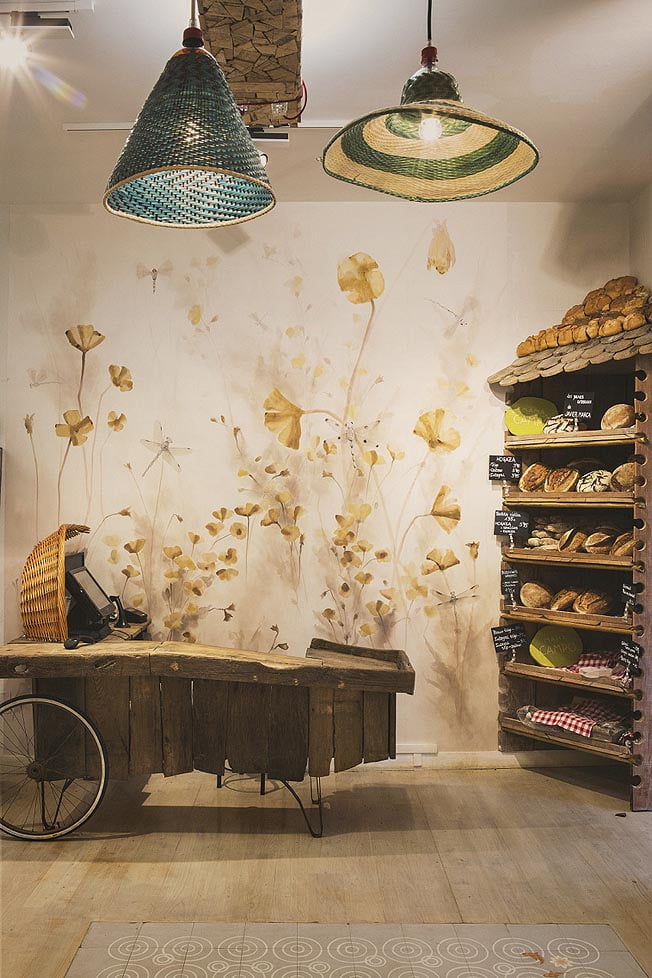 Papel pintado a mano, realizado con técnica mixta con tintas y acrílicos al agua.