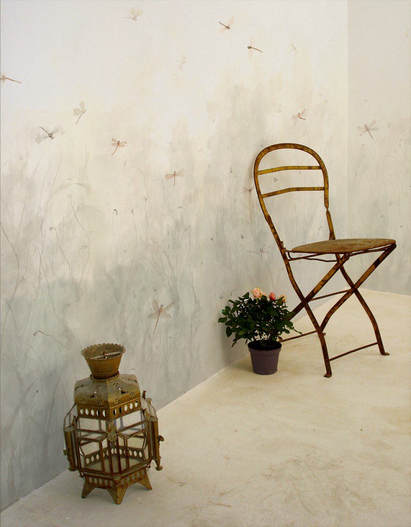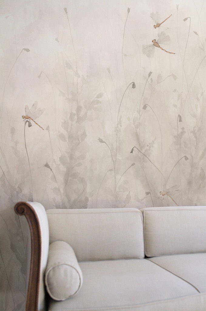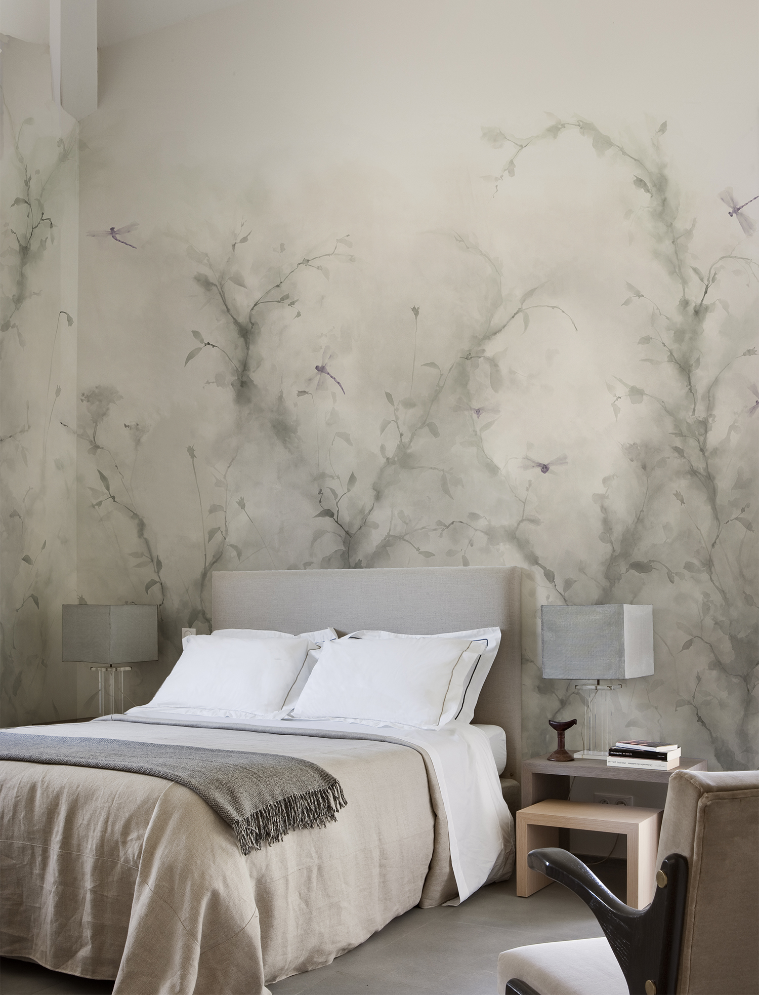 Papel pintado a mano, realizado con técnica mixta con tintas y acrílicos al agua.