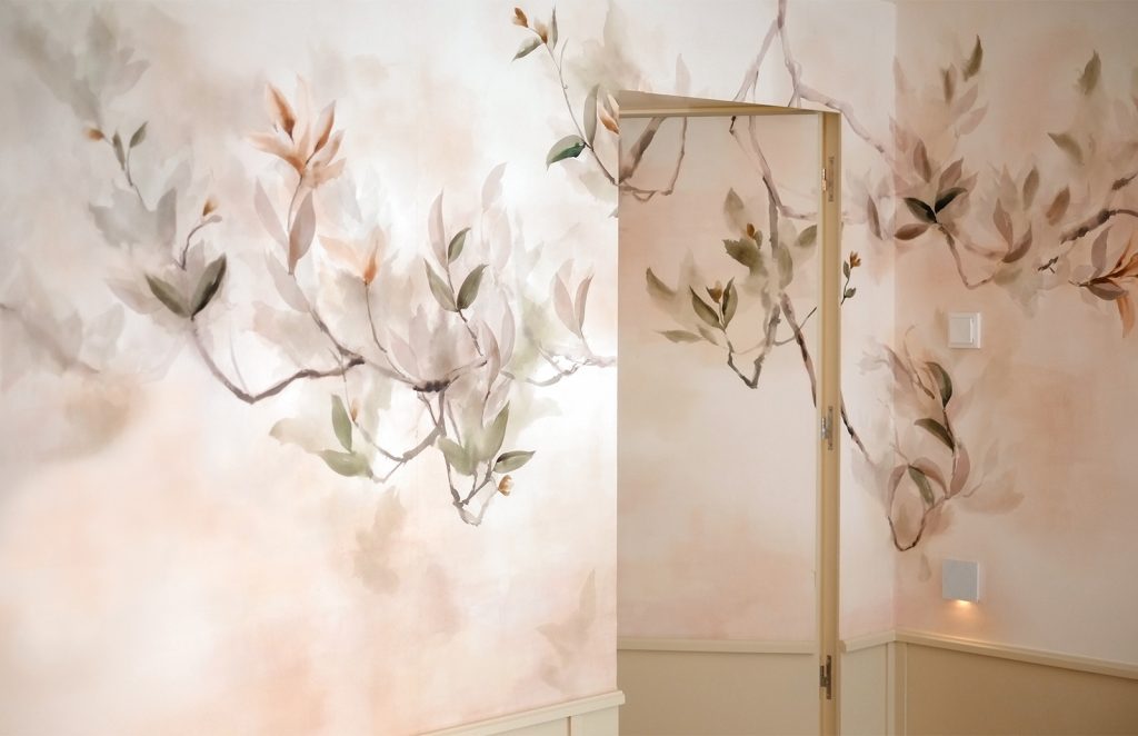 Sakura – hand painted on silver leaf | private residence, Madrid | Designer: Mausa Marsá
